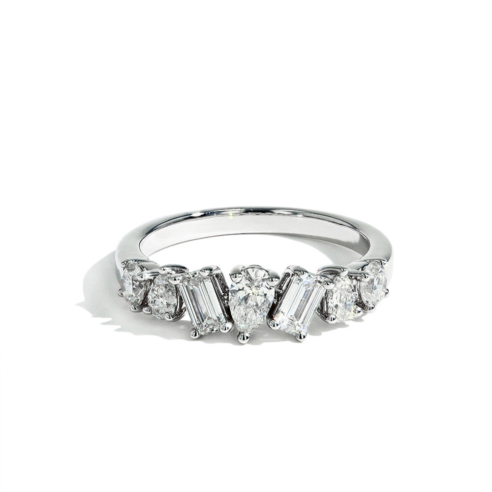 Shop the collection of fancy shape diamond wedding rings for women featuring diamonds with fancy shape cuts like marquise, pear, and oval diamonds. Alternating diamonds add the perfect modern flair for a diamond wedding ring not everyone has. Compliment your engagement ring with a fancy shape diamond wedding ring and you will love it for a lifetime.