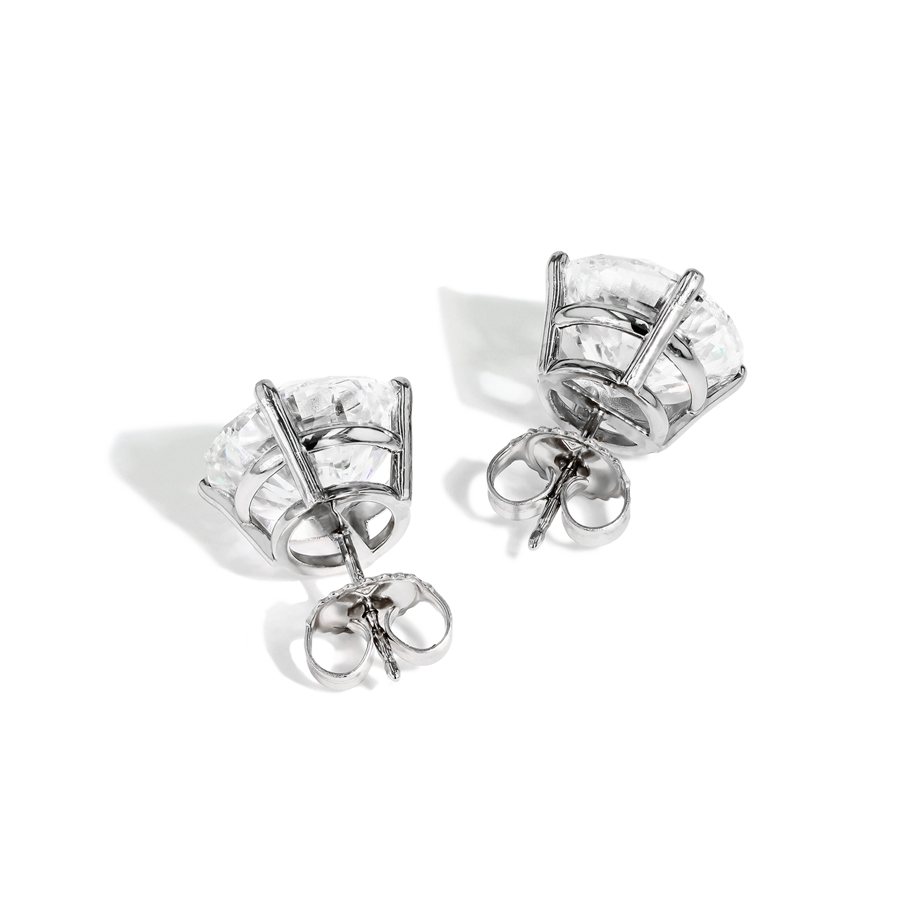 A timeless pair of diamond stud earrings featuring two GIA-certified round brilliant-cut diamonds totaling 10.11 carats. Each diamond is set in a classic four-prong 14K white gold setting with medium-weight backs for secure, comfortable wear.