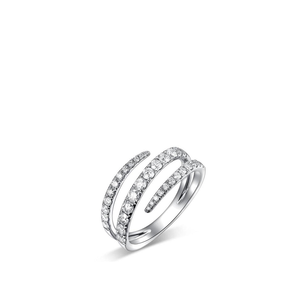 A stylish wrap style ring designed with three rows of beautiful diamonds.