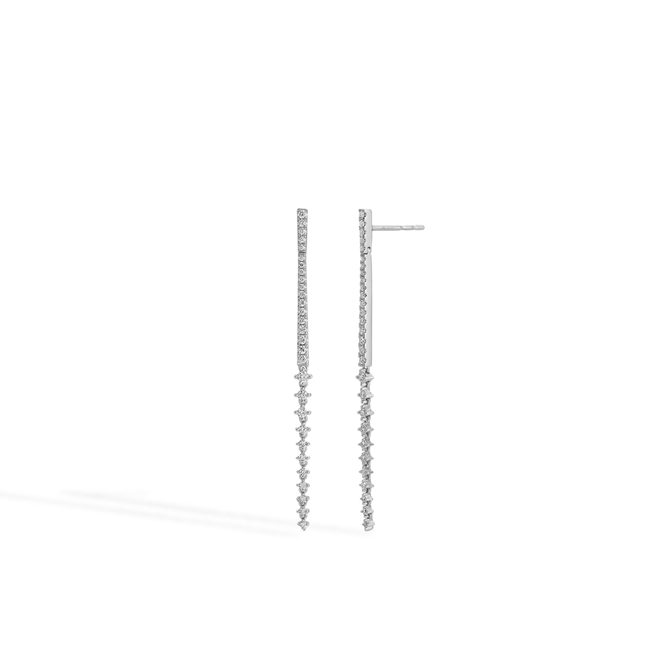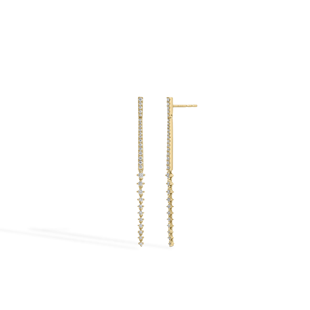 The EF Collection Diamond Duster Drop Earrings present expertly compass-set diamonds that gradually enlarge from the post, creating a striking and refined look. A diamond bar flows effortlessly into a flexible diamond base, enabling smooth, graceful motion with every movement.