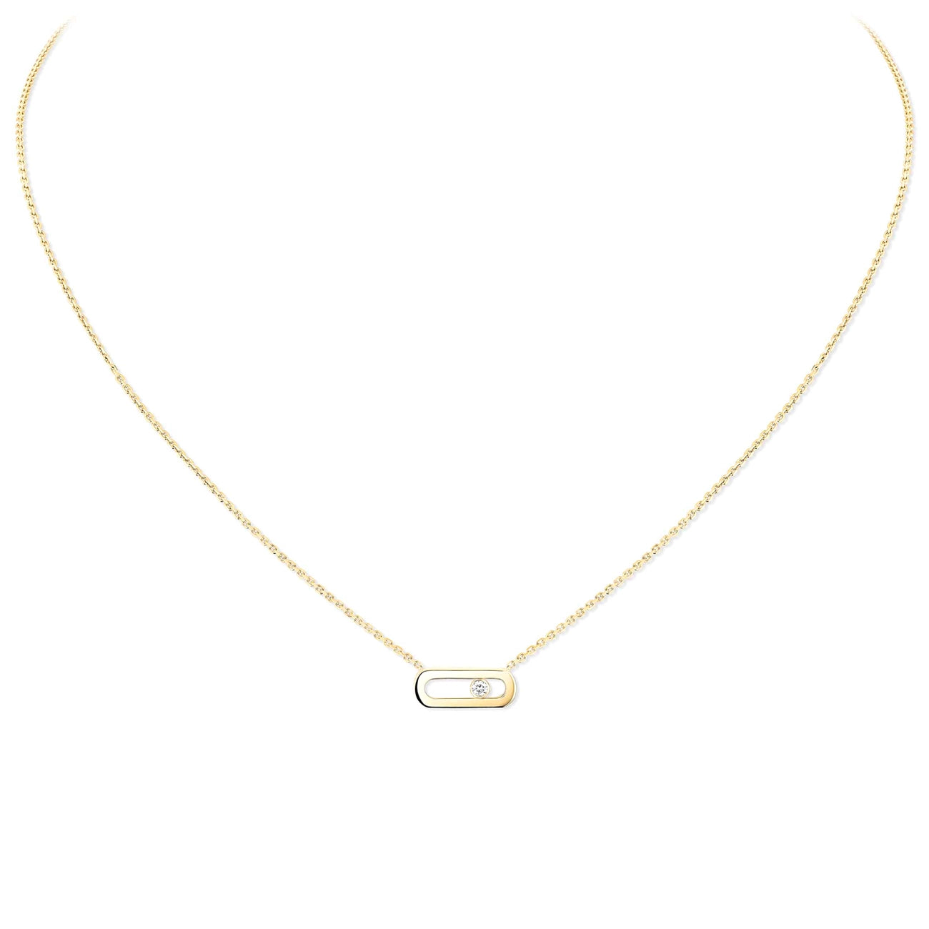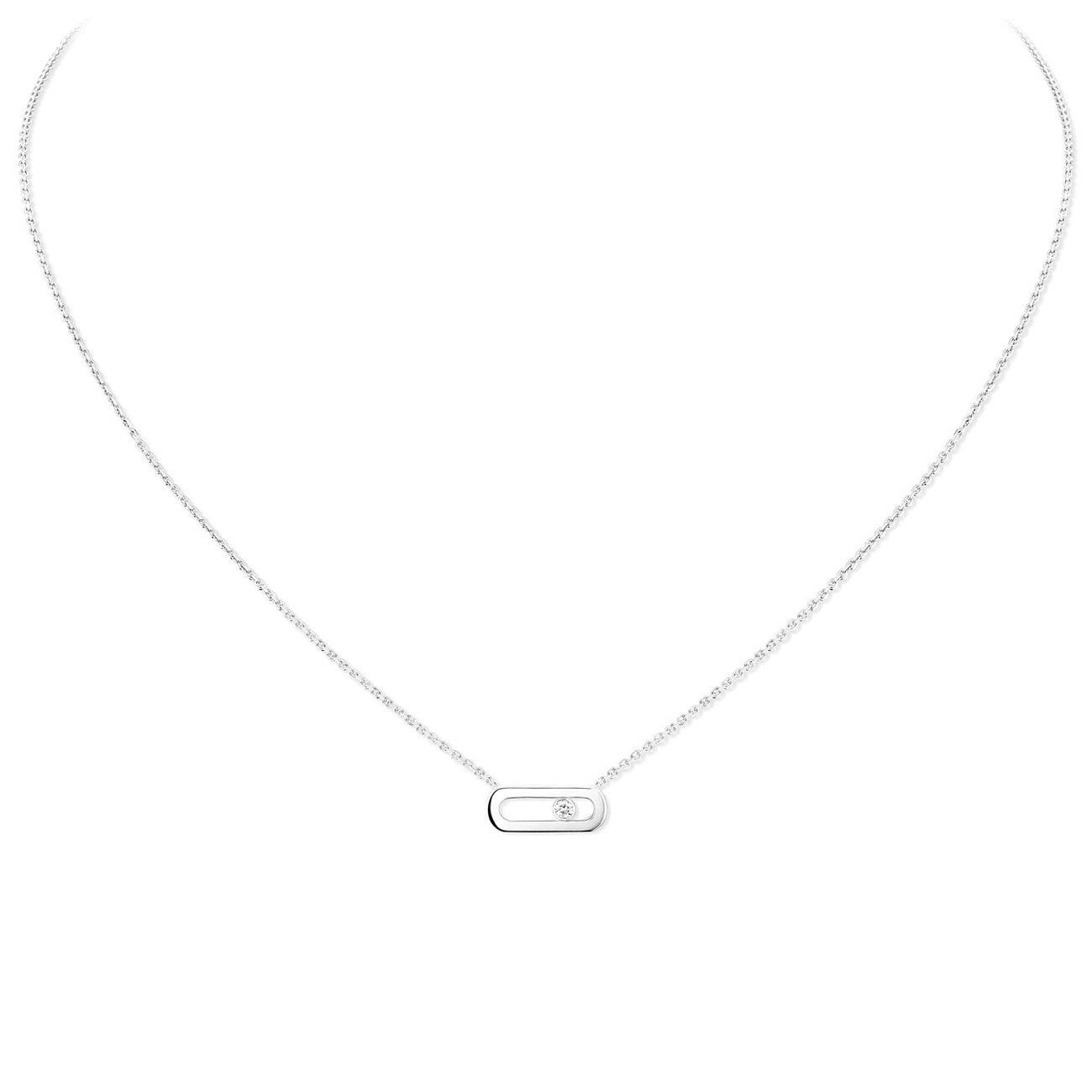 This handcrafted necklace from Messika is sure to be the spotlight of any occasion. Completed by the signature moving diamond set in 18K gold of your choice. It is an elegant beauty with a modern twist.