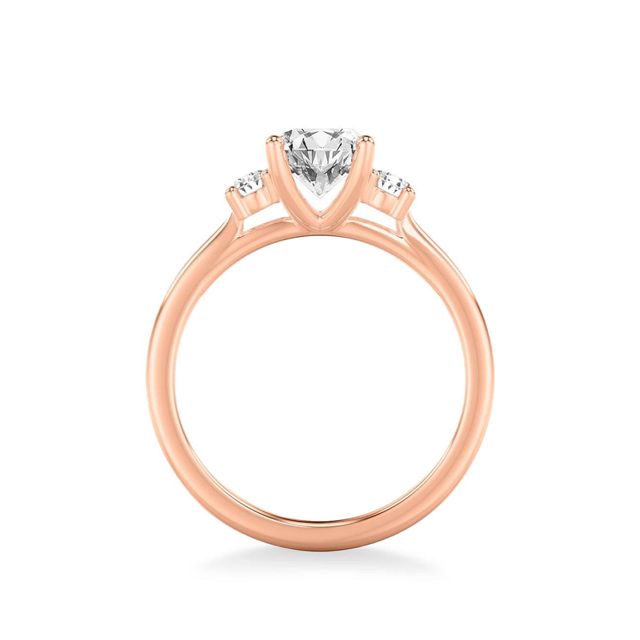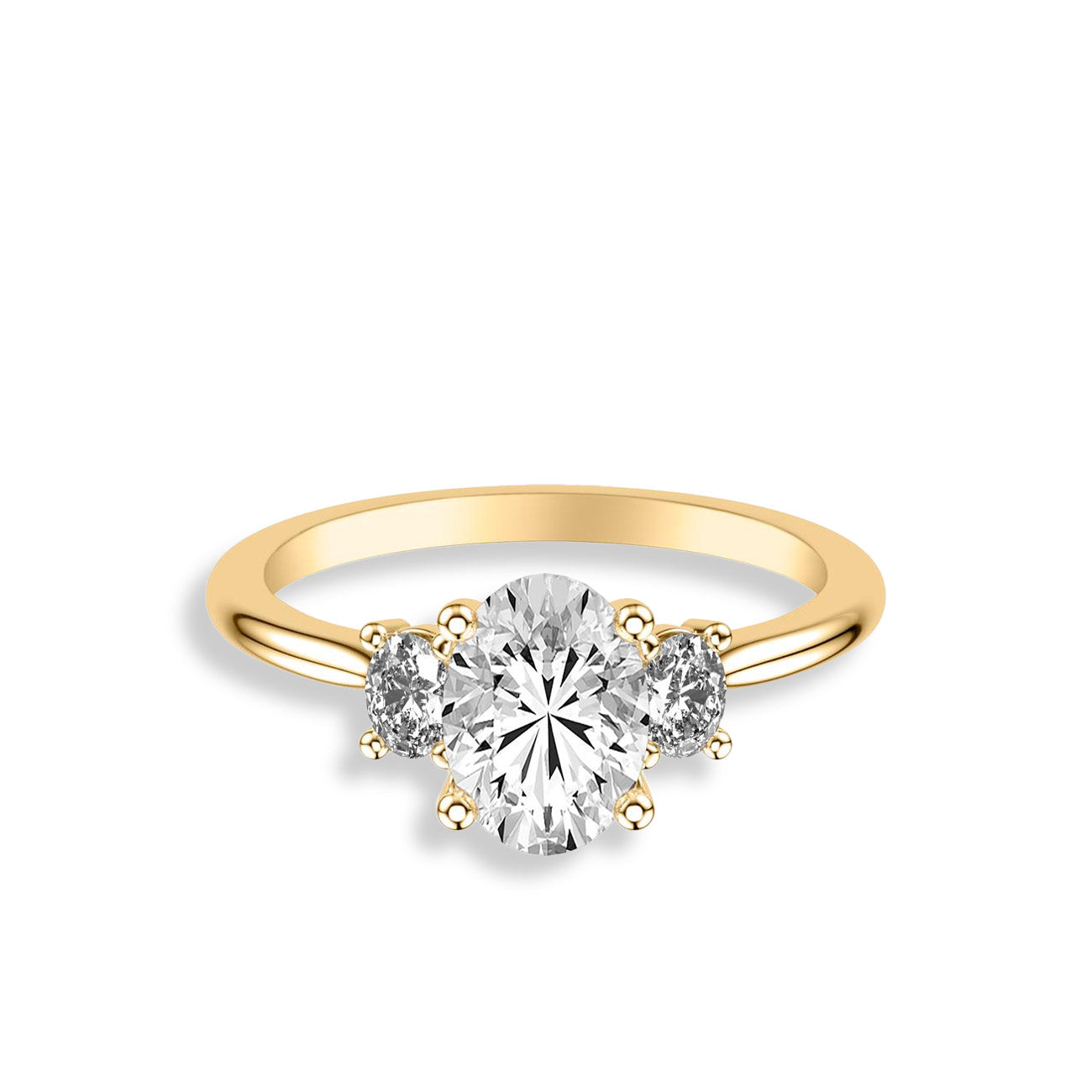 Introducing a breathtaking engagement ring designed to hold a 1.50ct oval center stone of your choosing. This exquisite setting features two additional oval-cut diamonds on either side of the center mounting. Available in your choice of platinum, or 14k gold in rose, white, or yellow.