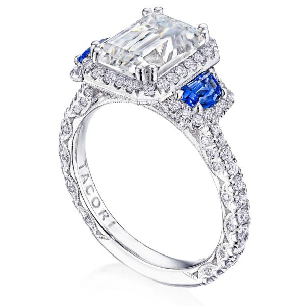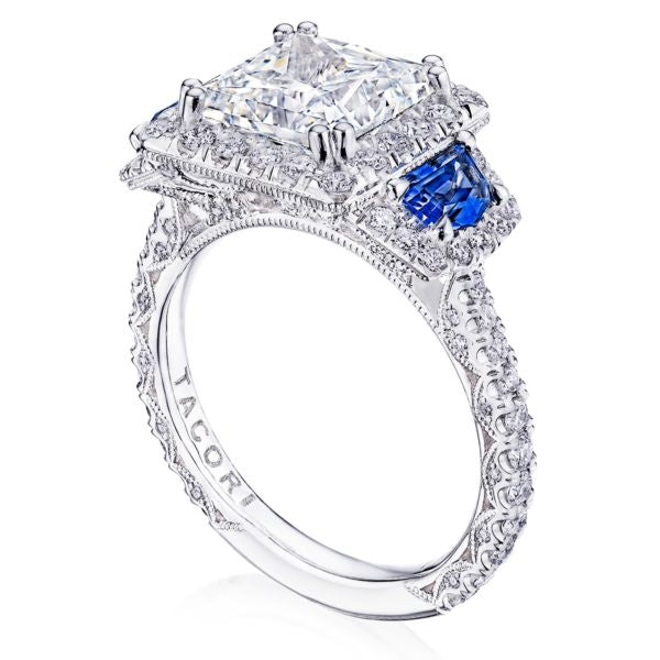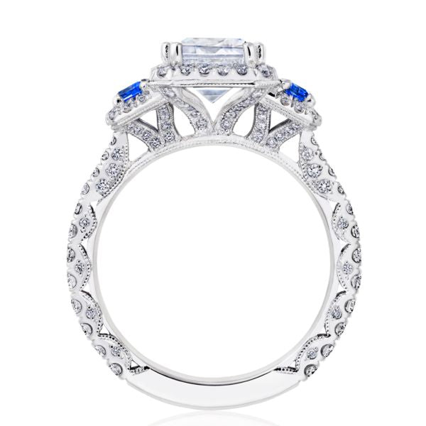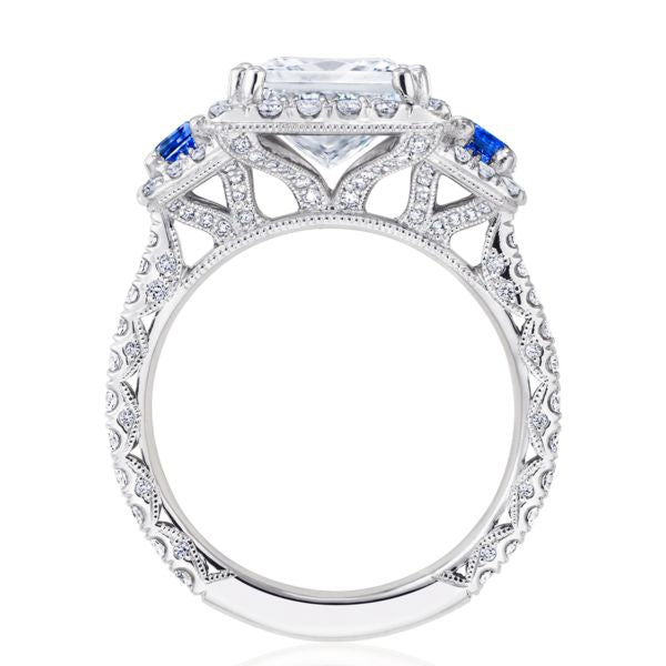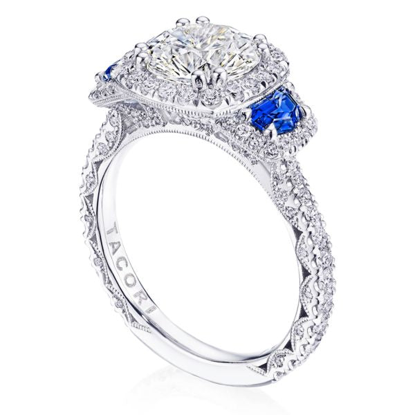 Tacori RoyalT Cushion Triple Bloom with Sapphire Side Stones