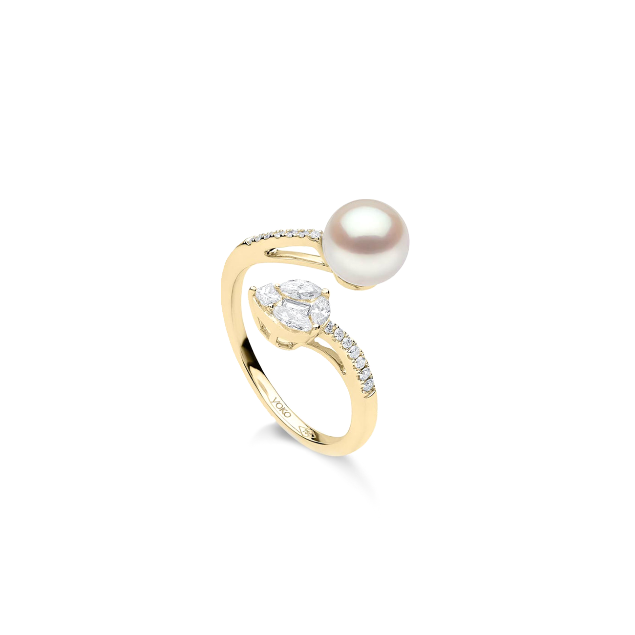 Elevate your everyday elegance with this stunning 7.5–8 mm Akoya pearl, surrounded by a constellation of delicate diamonds and set in luxurious 18K gold. This exquisite piece is part of Yoko London’s Starlight collection, showcasing the artistry and sophistication of fine jewelry. The elegant split ring features a luminous Akoya pearl balanced by a cluster of marquise and baguette-cut diamonds, complemented by a delicate pavé diamond band for a timeless and sophisticated look.